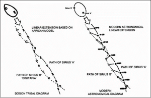Người Dogons rất chú trọng đến ngôi sao này. Họ nói rằng nó xuất hiện từ rất, rất lâu rồi và vô cùng nhỏ, và họ gọi nó là “Vật chất nặng nhất trong vũ trụ”. Và họ nói rằng cần đến “Gần 50 năm” để ngôi sao bé nhỏ này quay quanh Sirius. Các nhà thiên văn học đã xác nhận sự tồn tại của Sirus B – Một hành tinh lùn màu trắng vào năm 1862. Nhưng chỉ cách đó 15 – 20 năm trước đó, họ thừa nhận một thông tin hoàn toàn khác.