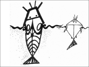 Đây là một điều khác mà người Dogon biết được. Có một hình vẽ nhỏ ở trên tường (Hình.1-4), nhưng các nhà khoa học không thể biết được nó là cái quái quỷ gì cả… cho đến khi máy tính có thể tính toán được quỹ đạo của Sirius A và Sirius B. Như những gì thấy được ở trên Trái Đất, mô hình này hiển thị trong hang động của người Dogon giống với mô hình được tạo dựng bởi Sirius B quay quanh Sirius A – trong một khung thời gian nhất định, xảy ra khoảng từ năm 1912 – 1990. Cá heo, hay bất kỳ sinh vật nào đã từng tồn tại, đã mang đến cho những người Dogon mảnh ghép của bức tranh toàn cảnh ít nhất là 700 năm về trước!