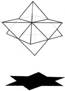 Trong thời kỳ Atlantis và sớm hơn nữa, cách mà chúng ta vận hành “Prana” liên hệ trực tiếp đến trường điện từ chạy xuyên suốt cơ thể. Tất cả những năng lượng trong trường điện từ đều có dạng hình học, và một trong số đó là hình tứ diện sao. Nó bao gồm 2 hình tứ diện lồng vào nhau (Hình 1-1). Và bạn cũng có thể nhìn thấy như là Ngôi sao David ở chiều kích thứ 3.
