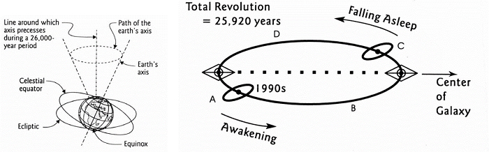 Văn phạm Sanskrit cổ nói về cách mà chúng ta chạm đến điểm thấp hơn trên hình cầu, tại A (Hình 2-40). Chúng ta đã trở nên ý thức hơn về năng lượng điện từ. Chúng ta có thể bay lượn trên không trung. Chúng ta có thể làm được rất nhiều điều mà mọi người cho là bất thường. Trái Đất đã mất đi tính ổn định và chỉ trong một ngày, chúng ta sẽ bỏ đi cái nhìn cũ về thế giới này và tạo nên một sự chuyển hóa lớn trong ý thức. Nhưng khi tiếp cận đến sự chuyển hóa này, với cấp độ ý thức cụ thể có được, chúng ta có xu hướng phá hủy tất cả mọi thứ mà chúng ta chạm vào. Đây là giai đoạn tự nhiên của con người mà chúng ta thật sự là. Chúng ta không làm sai điều gì cả; đấy chỉ là cách mà chúng ta chọn. Chúng ta đang thực hiện chính xác theo tiến trình. Chúng ta phá hủy mọi thứ, chúng ta khiến mọi điều trở nên bất ổn. Tôi sẽ nói về điều này sau nhưng tôi tin rằng đây là thời điểm thích hợp để nói với bạn điều này.