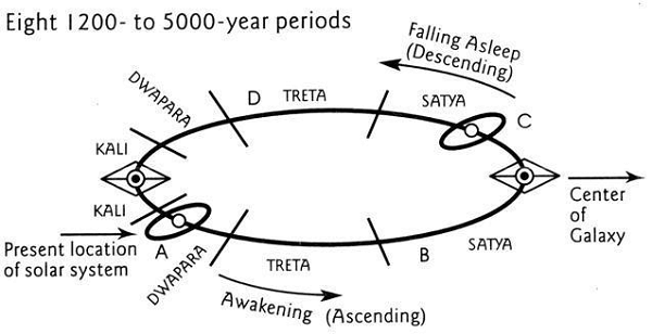 Giờ thì tôi chỉ muốn nhìn vào một khía cạnh chính (Hình.2-39). Có một sự di chuyển từ từ xung quanh quả cầu hình tròn và quả cầu lớn hơn (Hình 2-40). Ở điểm kết thúc ở bên phải nằm ngay trung tâm và đối diện với nó là điểm khởi đầu ở bên trái.Chuyển động của hành tinh khi nó quanh ngược lại và hướng xa ra khỏi trung tâm gọi là ngọn gió thiên hà. Văn phạm Sankrit cổ gọi đó là sự hiện hữu cổ đại.