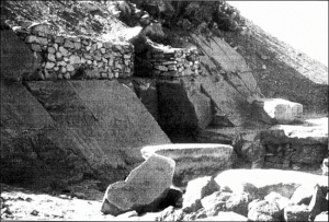 Không chỉ có Kim Tự Tháp này ở đó, mà Kim Tự Tháp ở khắp mọi nơi, tôi ước tính là khoảng mười dặm xung quanh! Có một thời, đây là tổ hợp các công trình lớn. Họ không làm bất cứ điều gì để bảo dưỡng khu vực này cả bởi vì họ biết rằng những Kim Tự Tháp này có lẽ lớn hơn 6000 năm tuổi. Vì thế nên tôi phát hiện ra rằng cuối cùng thì những Kim Tự Tháp “Không quan trọng này” “Không quá quan trọng” để quân đội bảo vệ. Những viên đá bao phủ Kim Tự Tháp này, giống như những viên đá nghiêng trong Hình 4-17, có thể nặng từ 60 đến 80 tấn mỗi viên. Cấu trúc rất tinh xảo mặc dù phần bên trong của Kim Tự Tháp được làm bằng gạch không nung.