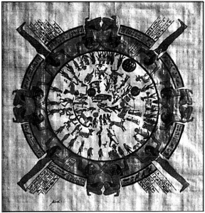 Trên trần của ngôi đền ở Dendera là luân xa tim của cực dương trong mạng lưới Christ, là một cung hoàng đạo chiêm tinh thể hiện sự phân cực đảo ngược này. Cung hoàng đạo quay theo hướng ngược lại, như là Mặt Trời mọc ở hướng Tây thay vì hướng Đông (Hình.5-5). Sông Nile chảy từ Nam lên Bắc, trong khi hầu hết các con sông khác trên thế giới chảy từ Bắc xuống Nam. Điều này cho chúng ta thấy được rằng người Ai Cập đã nắm giữ dòng năng lượng cổ xưa hơn ngay cả trong Trái Đất.