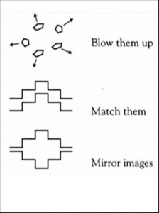Tuy nhiên, Rife chỉ biết một phần của phương trình. Nếu anh ấy biết hình học linh thiêng thì giờ đây anh ấy có thể cho ra tất cả 26 hình dạng và loại bỏ bất kỳ loại Virus nào đang tồn tại. Không quan trọng có bao nhiêu dạng Virus AIDS, không cần thiết phải tìm ra giải pháp. Có tối đa 26 mẫu và tần số phù hợp sẽ loại bỏ mọi Virus đơn lẻ (hoặc vi khuẩn). Bởi vì mọi Virus đều là một khối đa diện về mặt cấu trúc, chúng trông giống như các hình đa diện trong Hình 6-43. Bạn có thể làm nổ chúng thông qua một số sóng hài nhất định của EMF hoặc bạn có thể kết hợp chúng với nhau (Hình.6-45). Bạn có thể kết hợp chúng lại với nhau, giống như một phần mềm chống Virus. Hoặc bạn có thể chỉ cần làm cho chúng không tồn tại bằng cách tạo ra một dạng sóng giống như hình ảnh phản chiếu của nó trong gương. Có rất nhiều cách để đối phó với AIDS, nhưng chìa khóa chính là hiểu rằng có tối đa 26 dạng hình học được liên kết với nó.