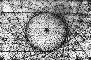 Trong hình học linh thiêng có một cái gì đó được gọi là Ratcheting (Bộ bánh cóc). Bạn đi một vòng tròn hoặc một đường thẳng và bộ bánh cóc, như khi bạn lấy một dụng cụ Ratcheting trong cơ khí ô tô và sử dụng nó để xoay một cái gì đó trong một khoảng cách nhất định. Ví dụ, hãy tưởng tượng hai mô hình Sáng Thế Ký chồng lên nhau. Một mô hình được nẹp cố định; nếu như xoay mô hình khác một góc 30 độ, bạn sẽ có mười hai quả cầu xung quanh trung tâm. Nó sẽ giống như thế này (Hình.6-2) trong không gian hai chiều. Trong không gian ba chiều, nó sẽ giống như một hình xuyến ống. Sau đó, nếu như kết nối tất cả các đường thẳng ở giữa, bạn sẽ có mô hình này (Hình.6-3).