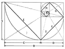 Hình chữ nhật bao quanh bản vẽ này (Hình.7-40) được gọi là Sợi chỉ vàng hình chữ nhật, cũng giống như ở trên. Để có được một Sợi chỉ vàng hình chữ nhật khác, tất cả công việc cần phải làm là đo cạnh ngắn hơn của hình chữ nhật (cạnh A) và đánh dấu một điểm dọc theo cạnh dài hơn (cạnh B), tạo thành một hình vuông (A = C). Khu vực còn lại (D) là một Sợi chỉ vàng hình chữ nhật khác.